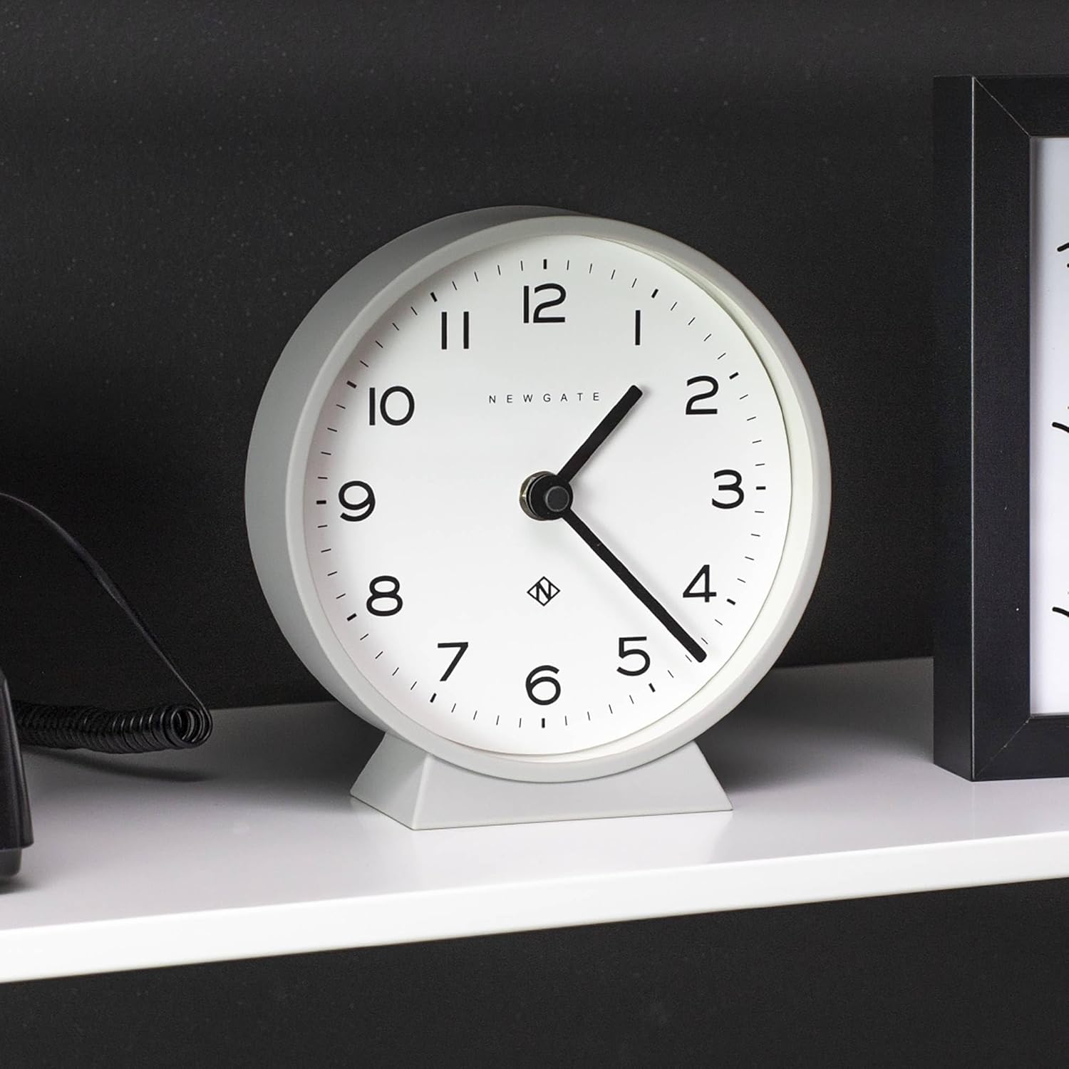 - Modern contemporary round desk clock with its clean, sculptural form and understated elegance, this Newgate clock offers a masterclass in minimalist design.