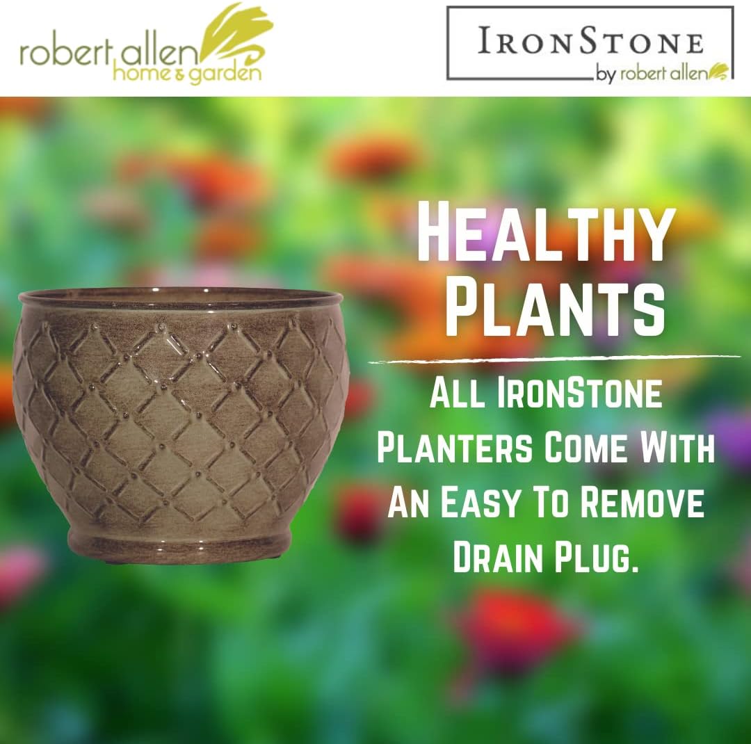 - -DRAINAGE – Contains a removable drain plug. Each IronStone planter comes with a drain plug that proves very useful whether inside or out during the changing seasons.