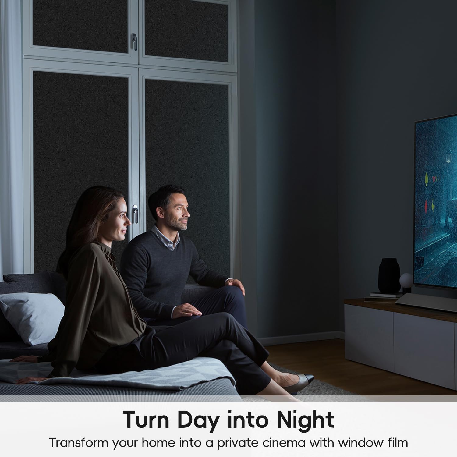 - Top Privacy Protection - Blackout Level: ★★★★★. Window privacy film provides complete light blackout, making it impossible to peek inside or outside. This blackout window film provides you with two-way top-level privacy protection and is suitable for various occasions such as bedrooms, video rooms, offices, etc. to create private, quiet and dark spaces.