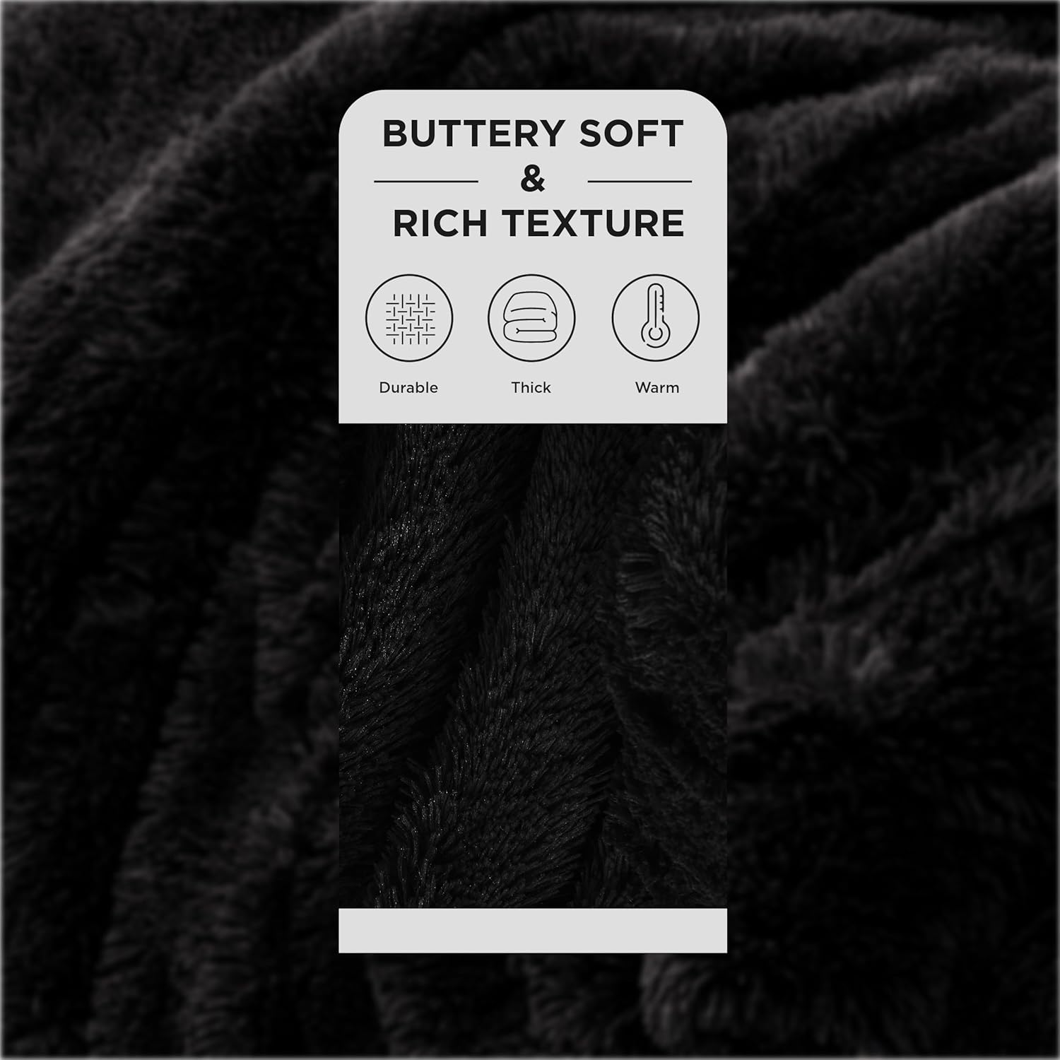 Bedsure GentleSoft Fluffy Black Blankets Queen Size for Bed, Thick Sherpa Faux Fur Fleece Fuzzy Plush Winter Warm Soft Full Queen Blankets, Bedroom Decor Black Gifts Cozy Gifts for Women Men, 90x90