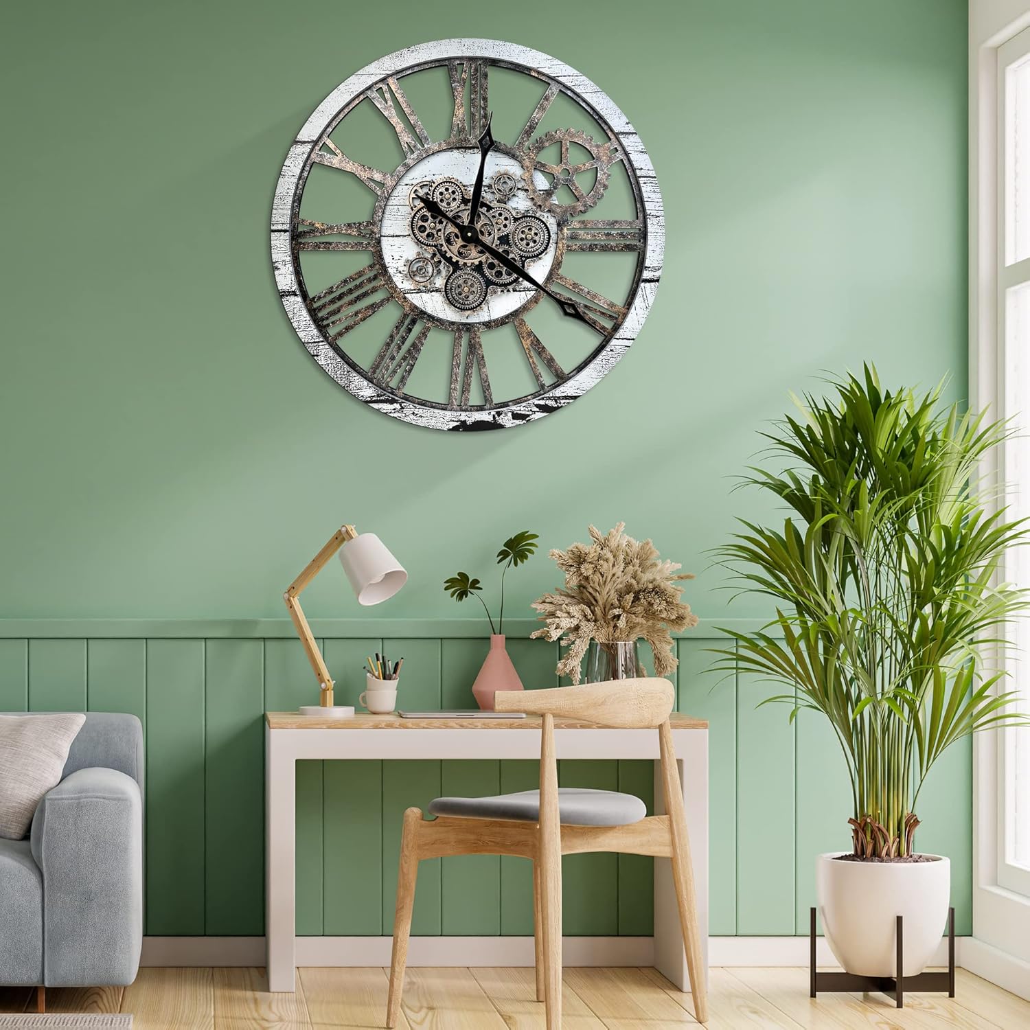 - 【Clocks for Living Room Decor】 It is not only a clock, but also a high value home decor for your living space to catching eyes. Bringing the highest qualities of craftsmanship retro decor into your home. The wall clock can be used in your room decor, living room, dining-room, farmhouse, bedroom, kitchen, entrance, stair, office, schools, hallway, bar, restaurant, coffee, clothing store etc. Perfect with any home style décor such as modern, vintage, farmhouse, industrial, steampunk etc.