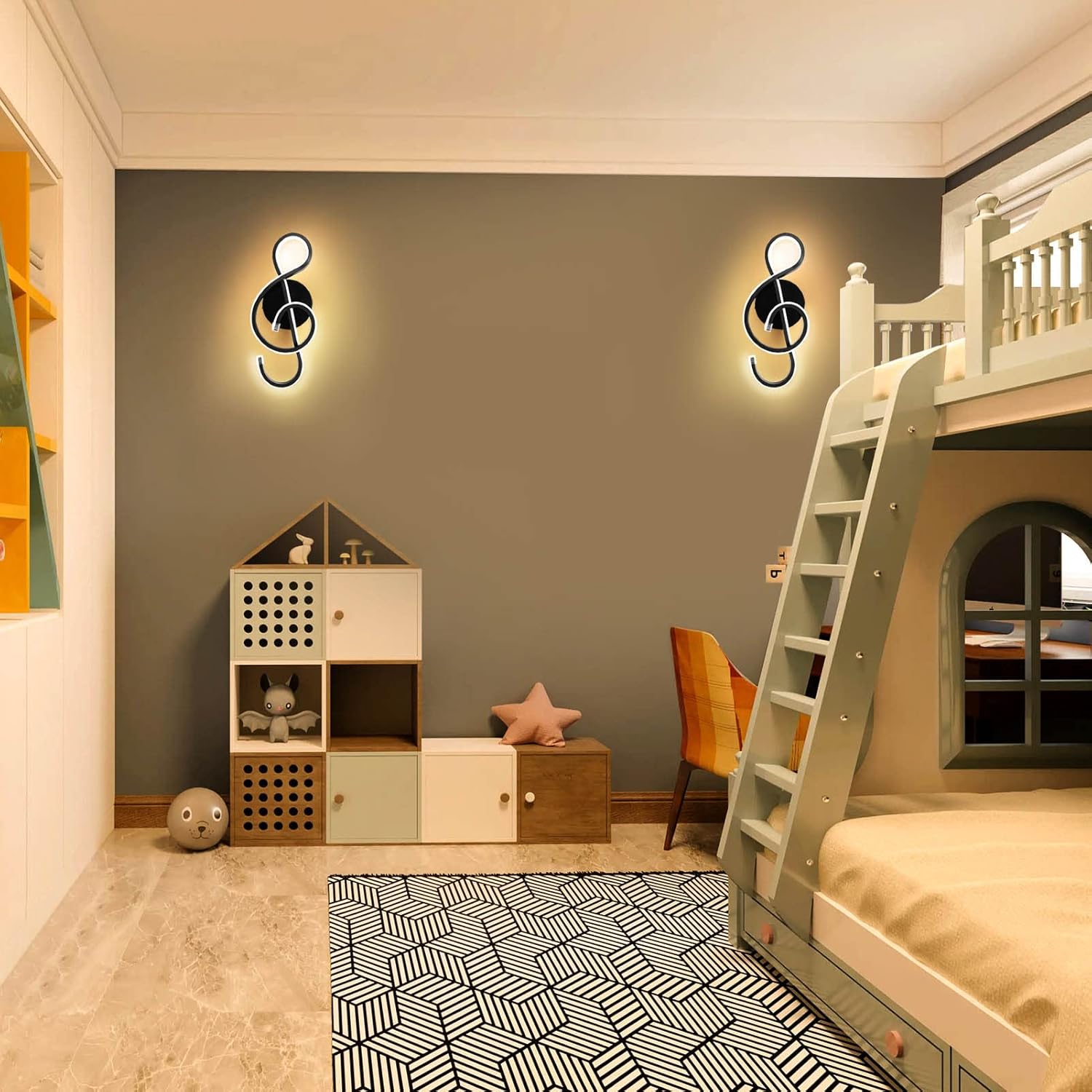- [Creative Shape] The shape of the musical symbol is fitted with a base suitable for American junction boxes, timeless minimalist design that perfect combination with modern, urban, minimalist and other decoration styles for the living room and bedroom.