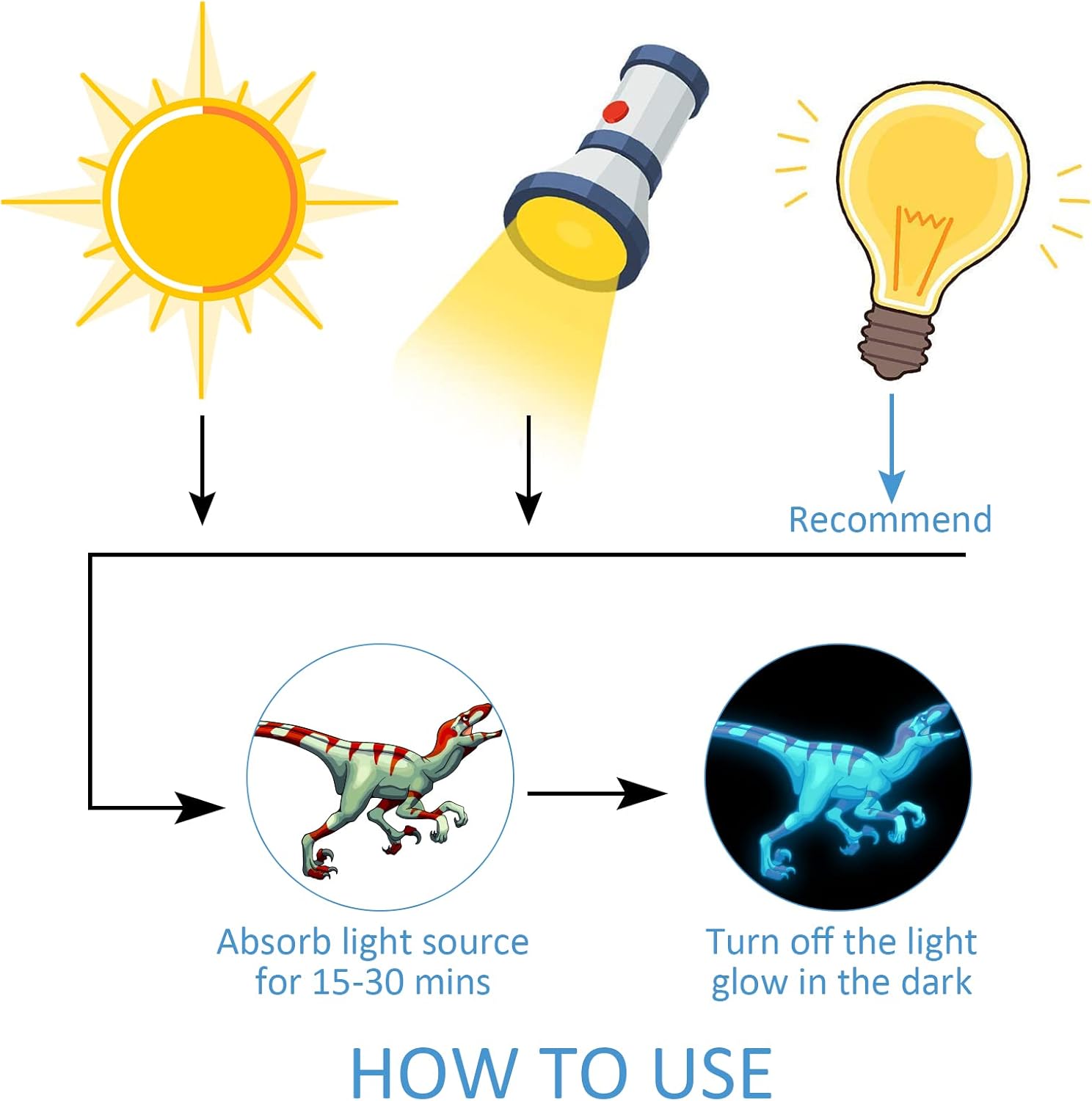 - 🦖【Easy to Apply】The glow sticker wall sticker sticks firmly to the wall without glue or tape. Also suitable for tables, switches, etc. No trace is left after removal.