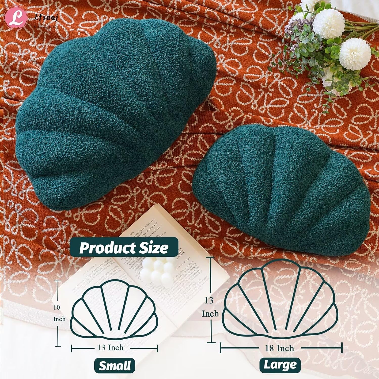Emerald Green Seashell Throw Pillows, Shell Shaped Throw Pillows, 13 Inch Soft Home Decorative Pillow Plush Cushion for Bed Couch Living Sofa Room Decor Accent Throw Pillow