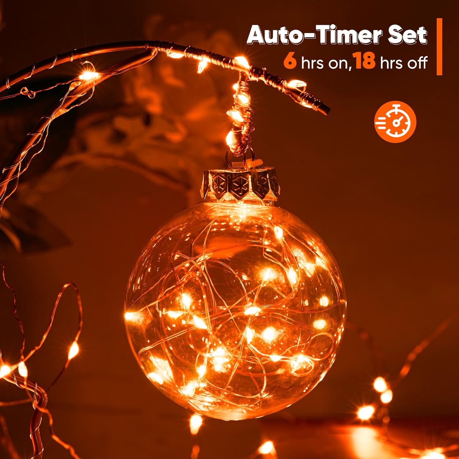 1 Pack 65.6 Ft. Battery Operated Outdoor String Lights with Remote & Timer, LED Orange Fairy Lights, Waterproof Twinkle Lights for Bedroom, Dorm, Mason Jar, Wedding, Party, Christmas