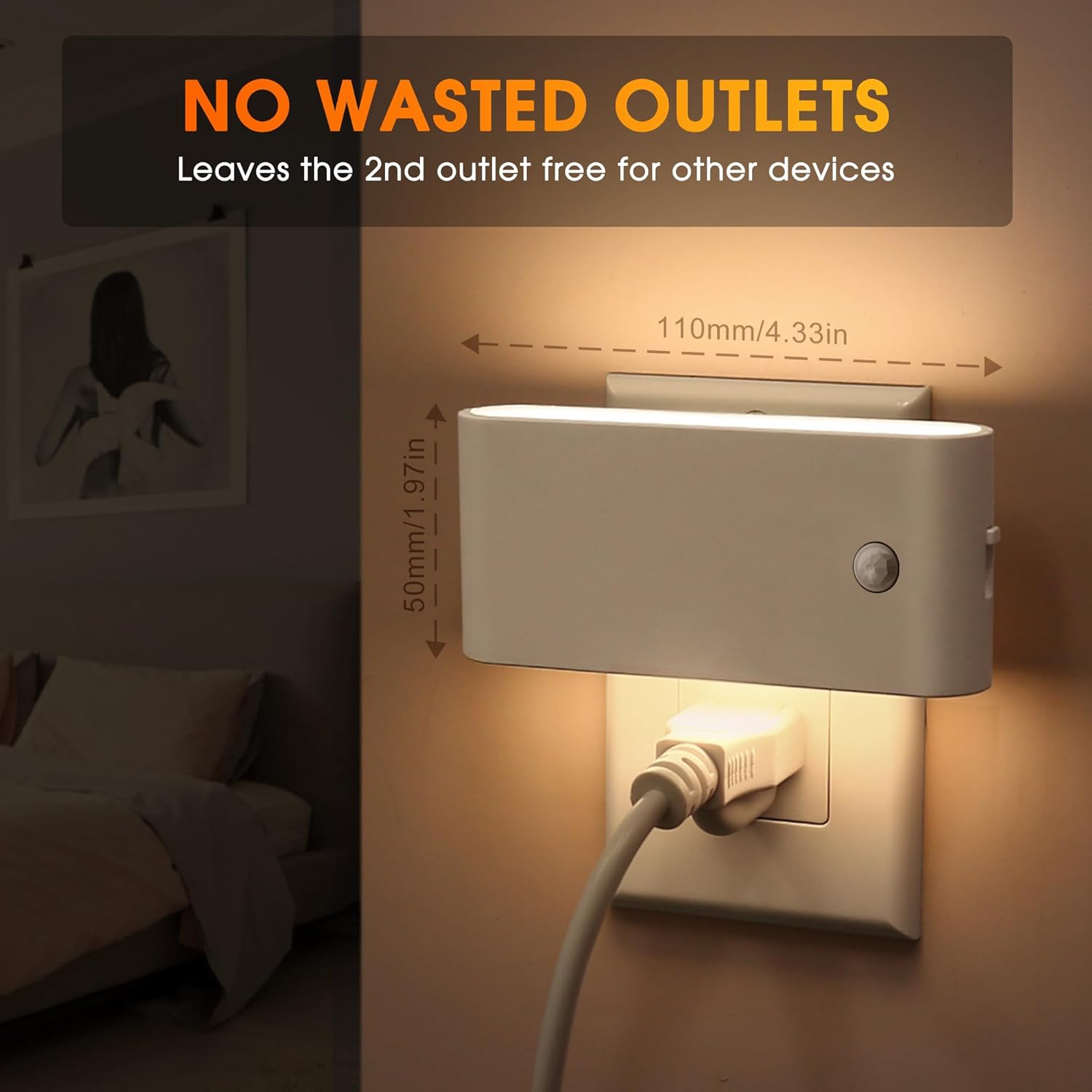 - Smart Motion Sensor: Our night light uses both motion and light sensors to automatically turn on in the dark when motion is detected within 2-5 meters. It shuts off after 60 seconds of inactivity, offering convenient, on-demand lighting.