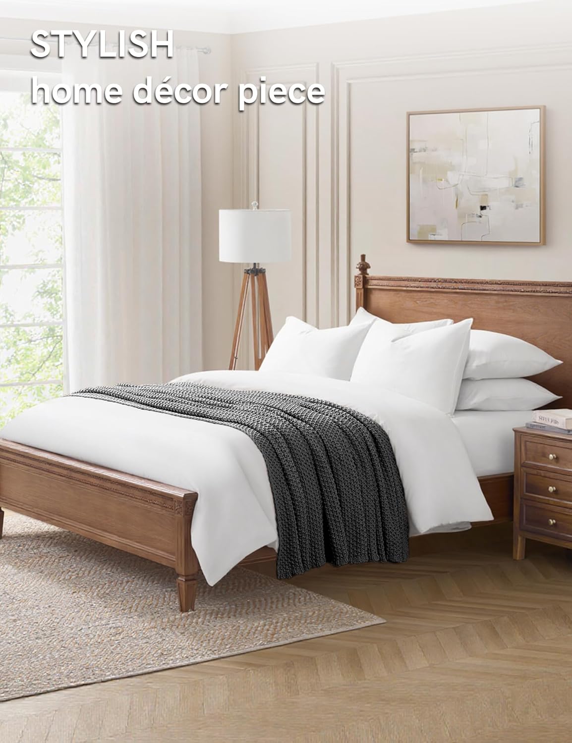 YnM Chunky Cotton Knit Throw Blanket, Cable Knit Throws for Bed Couch Sofa, Comfy & Relaxing, Decorative Piece for Farmhouse Modern Boho Rustic Scandinavian Chic Vibe, Moon Grey 60x80 Inches