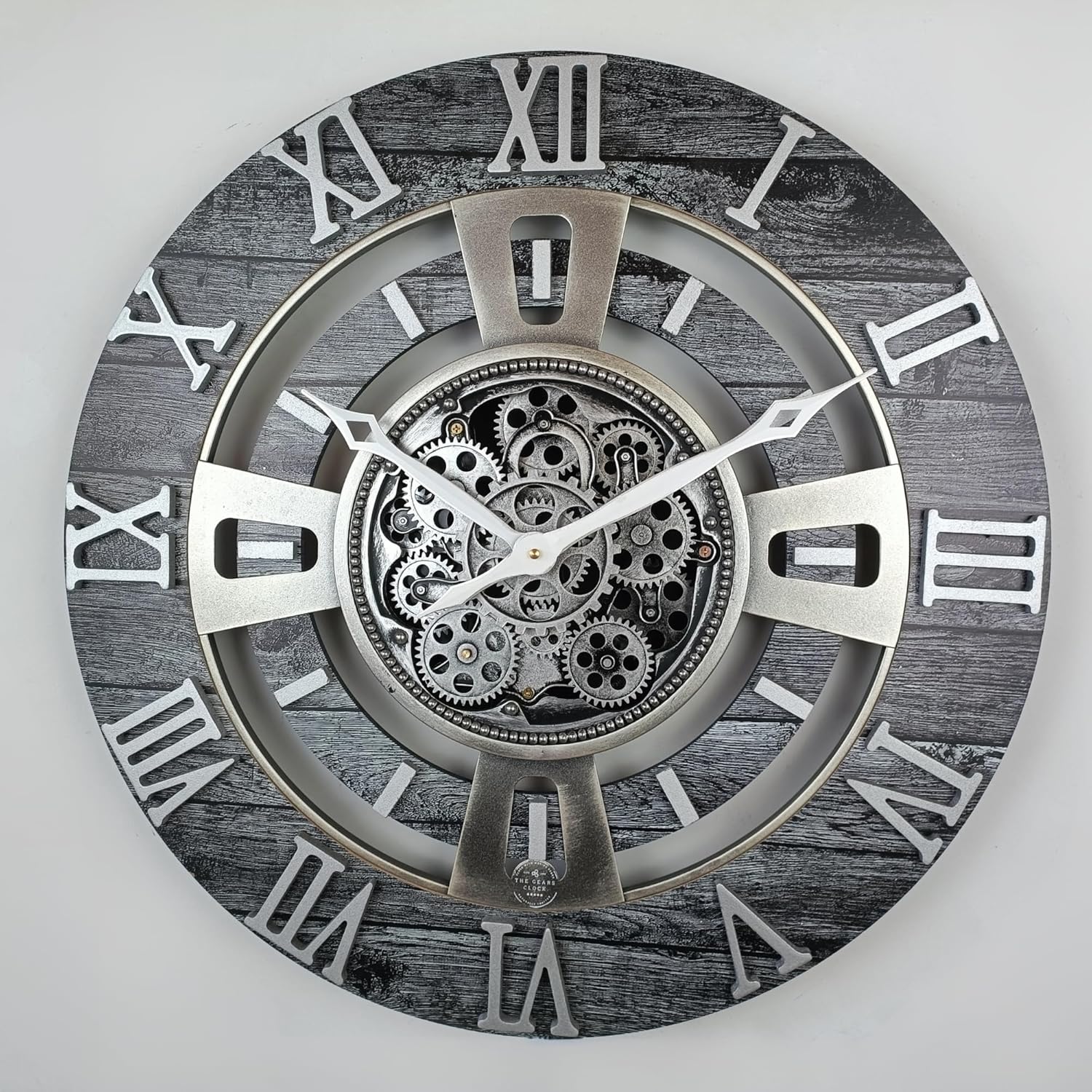 - MATERIAL QUALITY | The entire frame is made of Fir Wood, with embossed Silver Metal Numeral, and high Quality Plastic Silver with aged effect gears for vintage and industrial effect. Very Strong personality.