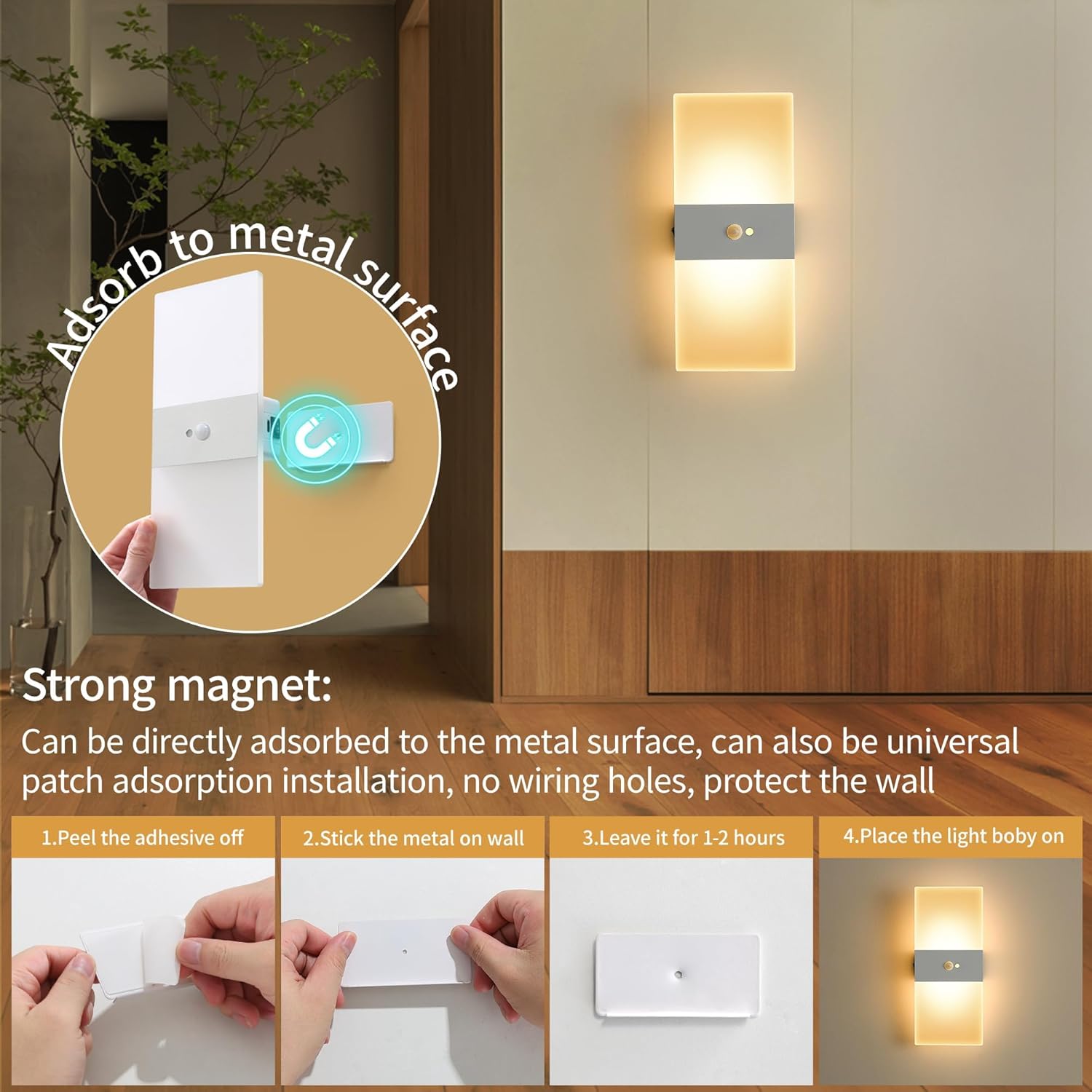 - Easy Installation: The magnetic wall sconces is quick to install, just use a magnet to attach the adhesive base to the wall lamp. It is easy to remove and recharge, will not damage the wall, it is the best choice for home decoration.