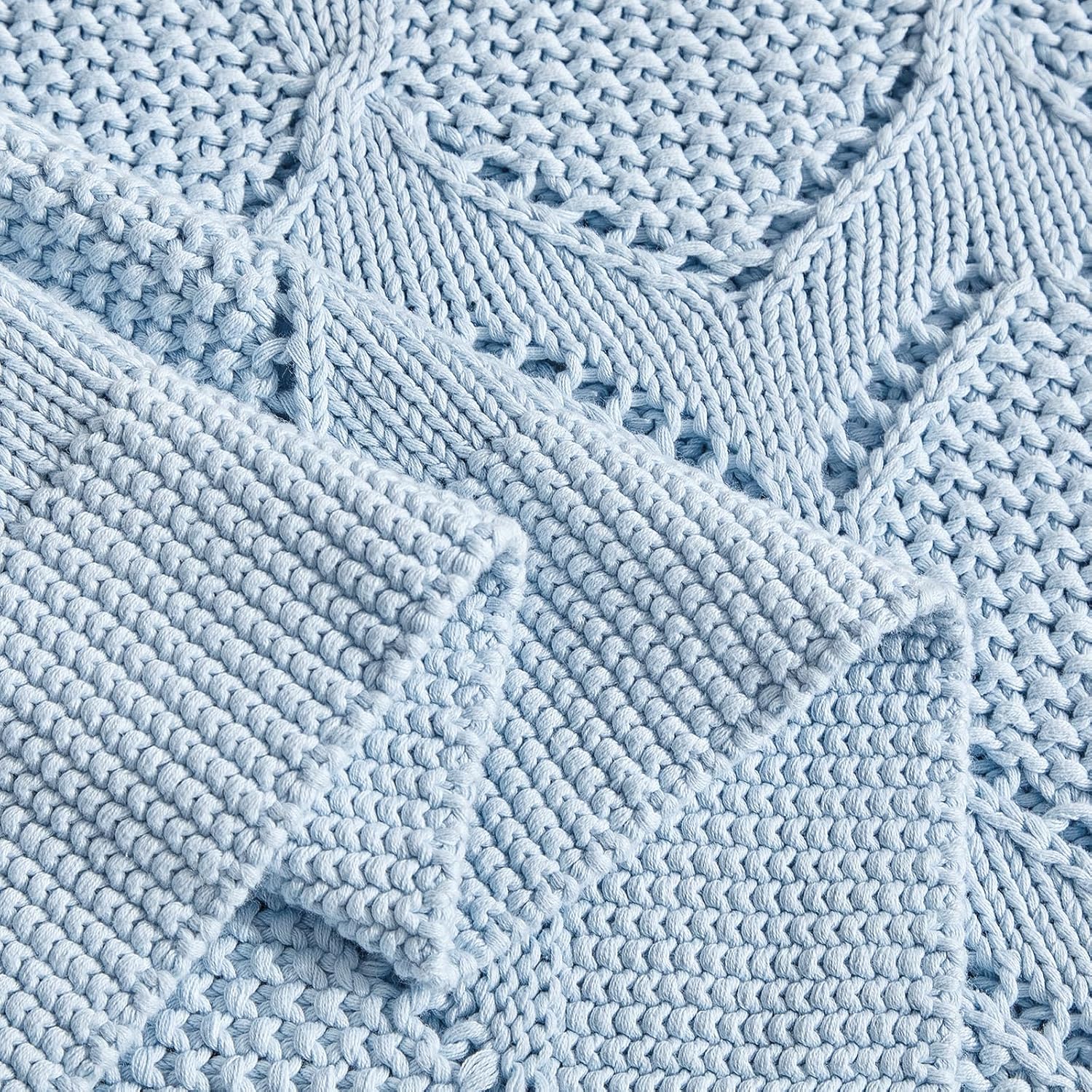 Longhui bedding Chunky Cotton Knit Throw Blanket for Couch, Sofa, Bed, or Chair, Decorative Breathable Fall Cable Knit Blanket 51 x 63 Inches, Light Blue