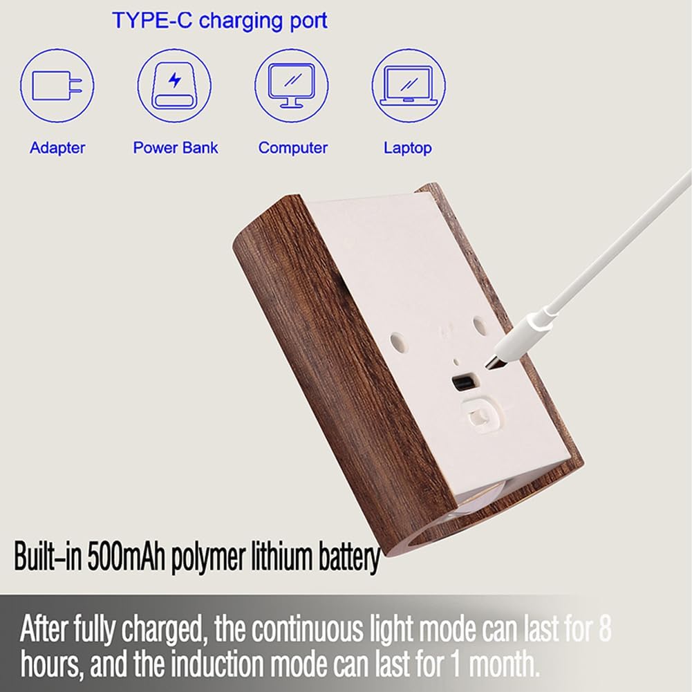 LANDGOO Smart Night Light Step Light - Rechargeable Motion Sensor Stair Lamp, 2700K Warm White LED Walnut Wood for Bedroom Hallway Safety (1 Pack)