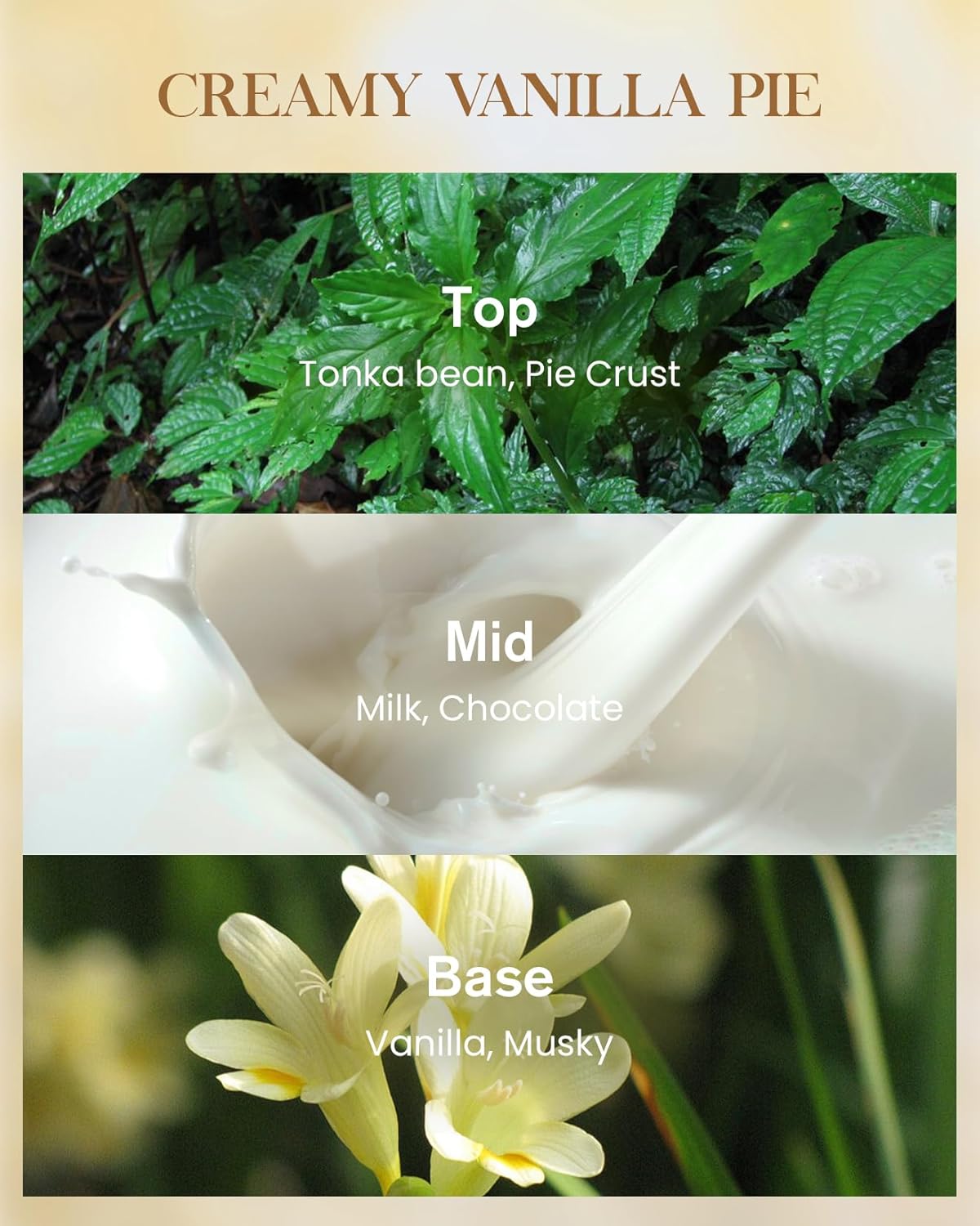 - Scent : vanilla, vanilla pie