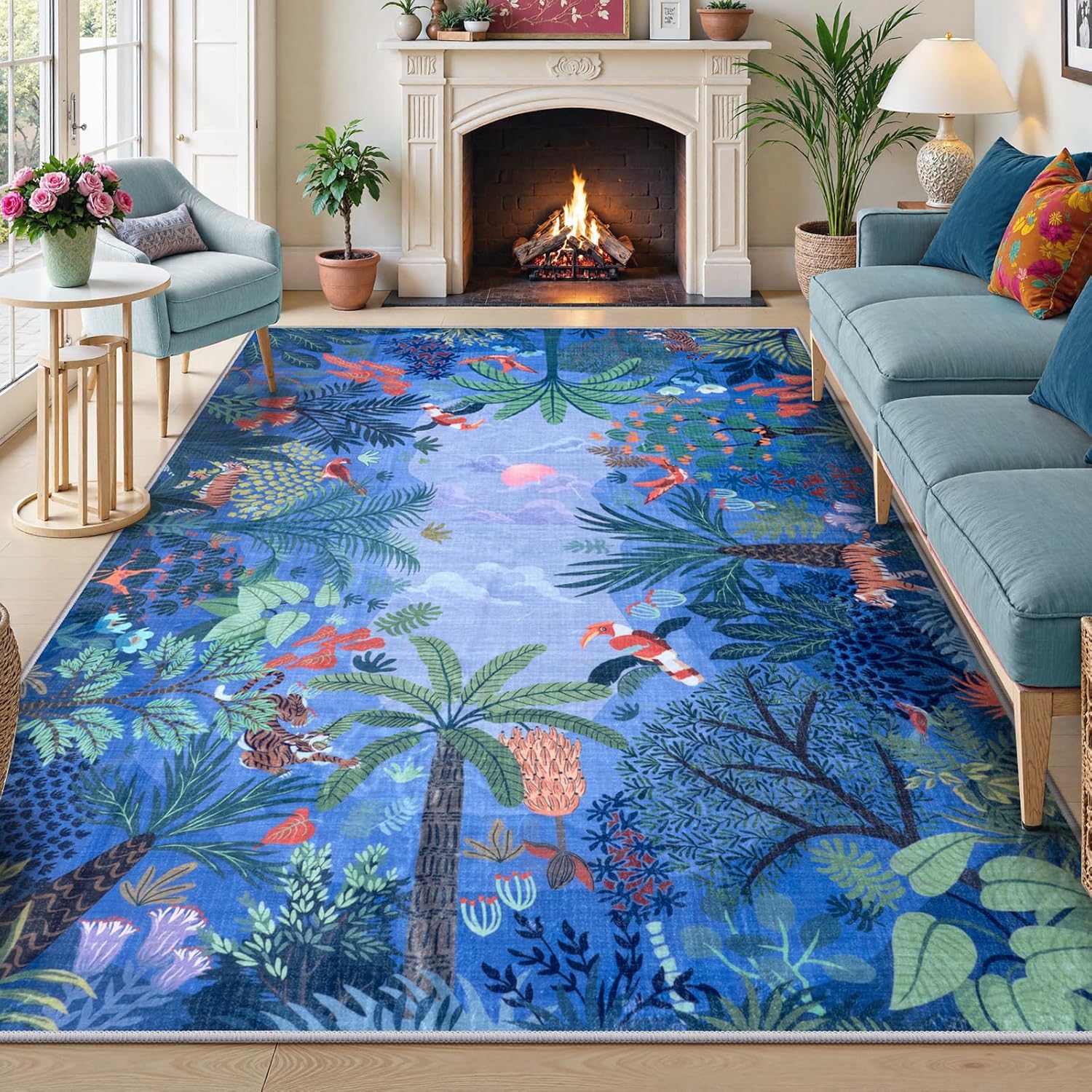 - 【Day and Night Collection】: LIVEBOX Day and Night Collection Rug captures the sky's transformation from dawn to midnight. With vibrant hues of four color, this rug brings the jungle's enchanting beauty and the sky's magical shifts into your space.