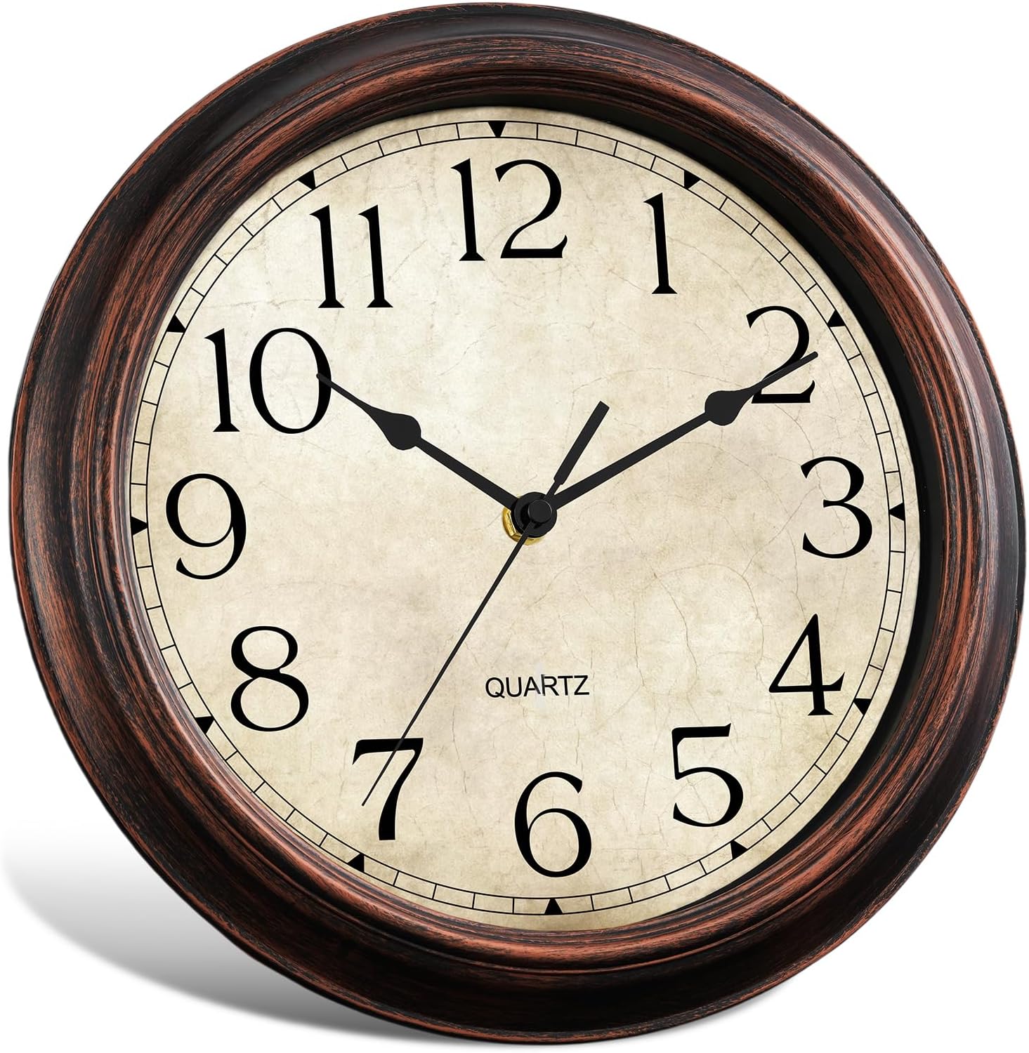14 Inch Wall Clocks Battery Operated Silent Non-Ticking Analog Wall Clock Vintage Retro Rustic Style Decorative for Living Room Kitchen Home Office(Bronze)