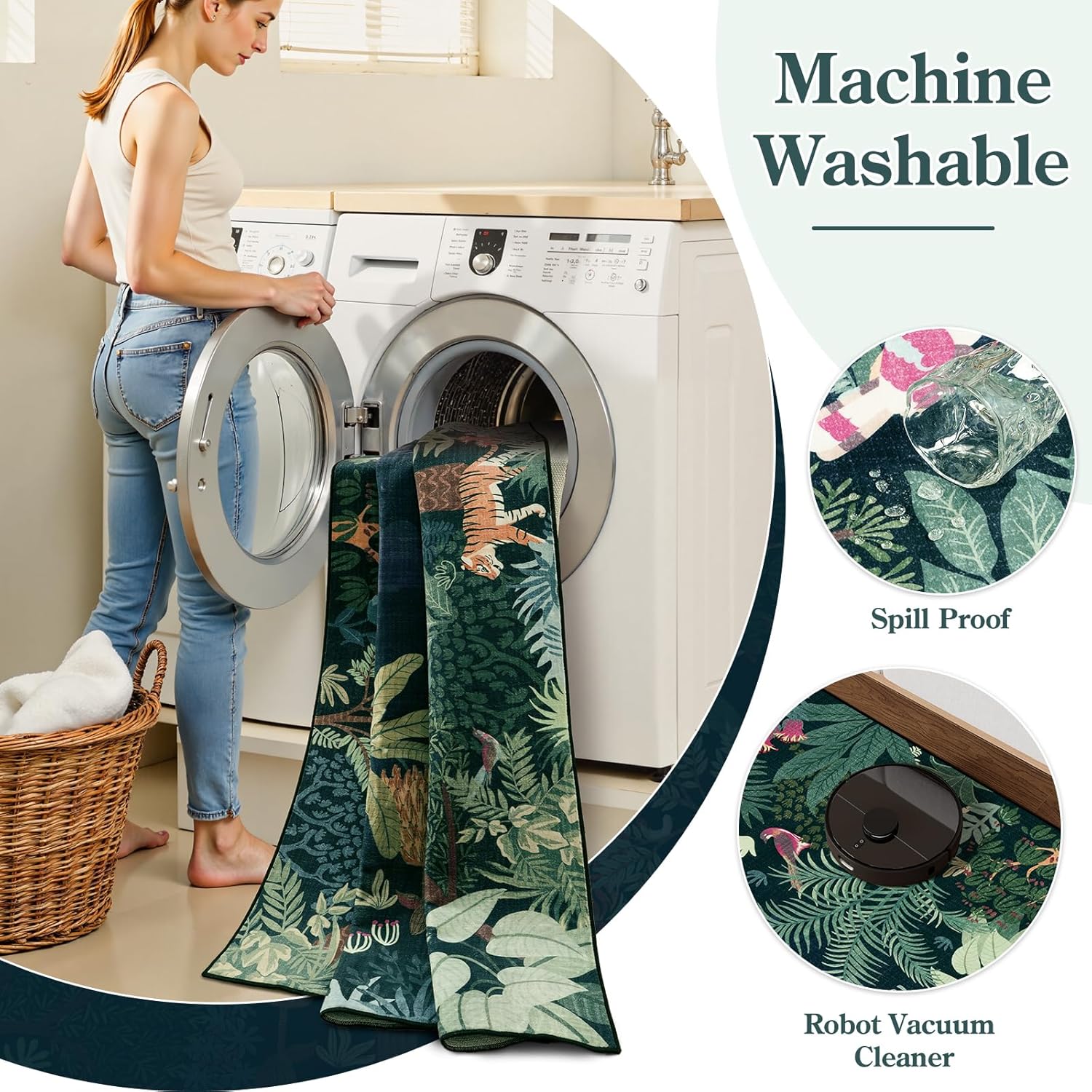 - 【Easy to Clean】: This dining room rugs is machine washable, making cleaning a breeze. Simply toss it in the washer or spot-clean minor stains to keep it looking fresh, saving you time and effort in maintaining a tidy home.