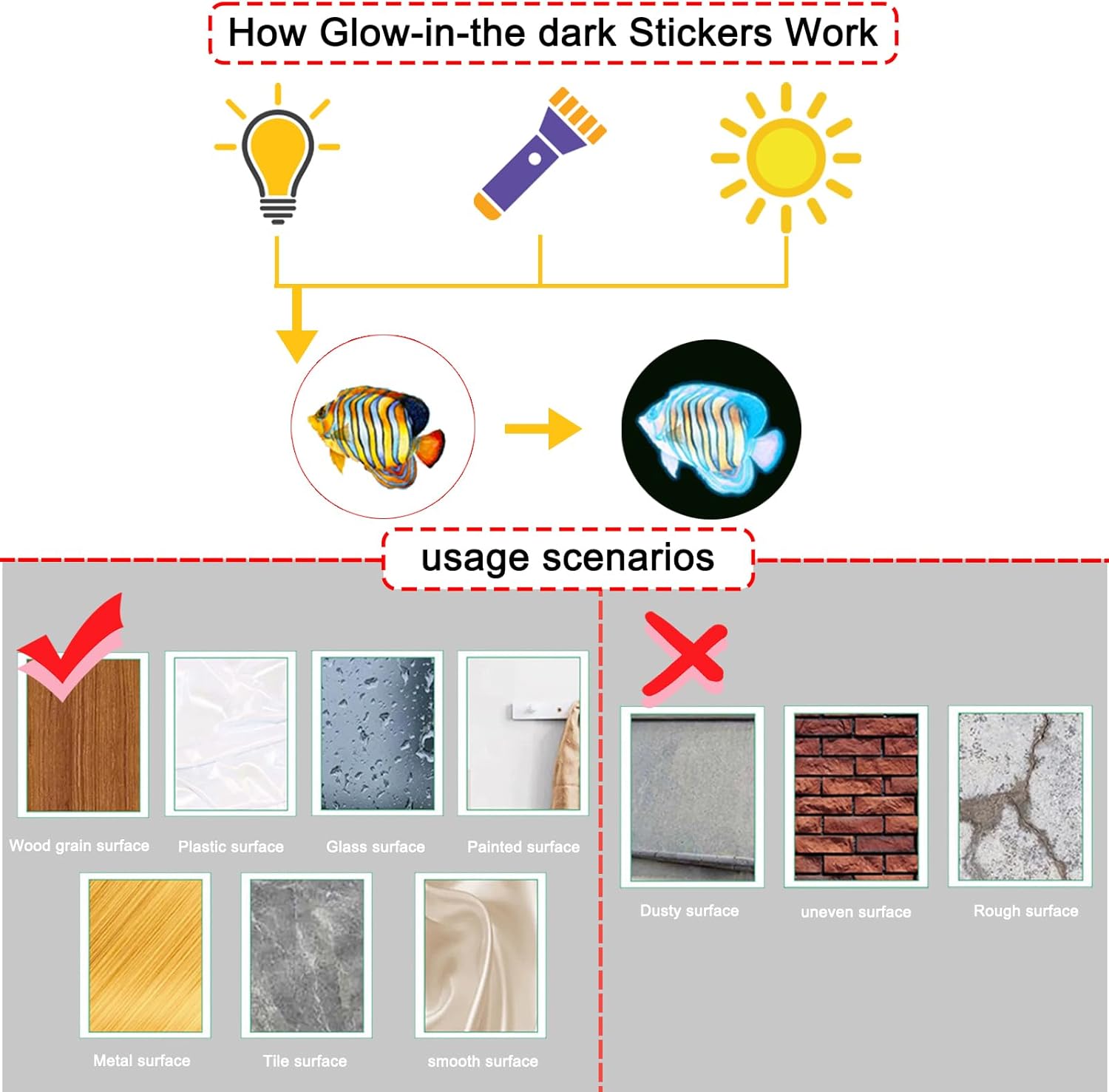 - Before Use: These underwater ceiling wall stickers are made of high-quality luminous material. They glow brightly after absorbing sufficient light during the day. After charging in daylight, they emit a soft glow at night for 8–15 hours. We recommend exposing them to room light, sunlight, or a flashlight for 10–30 minutes for optimal results. For best performance, place them close to light sources.