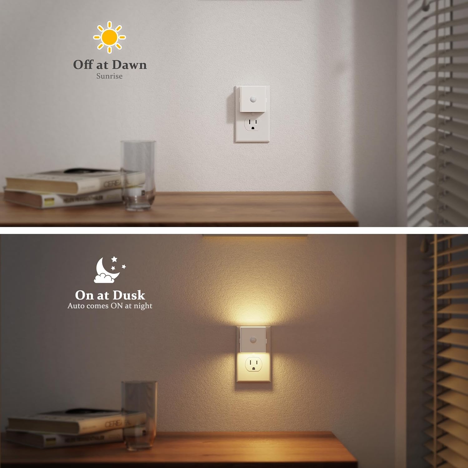- Modern and Minimalist Design :Designed with a sleek black frame, this modern night light blends seamlessly with any decor. Its compact and sophisticated appearance ensures it doesn't obstruct the bottom outlet, making it both stylish and functional for any room