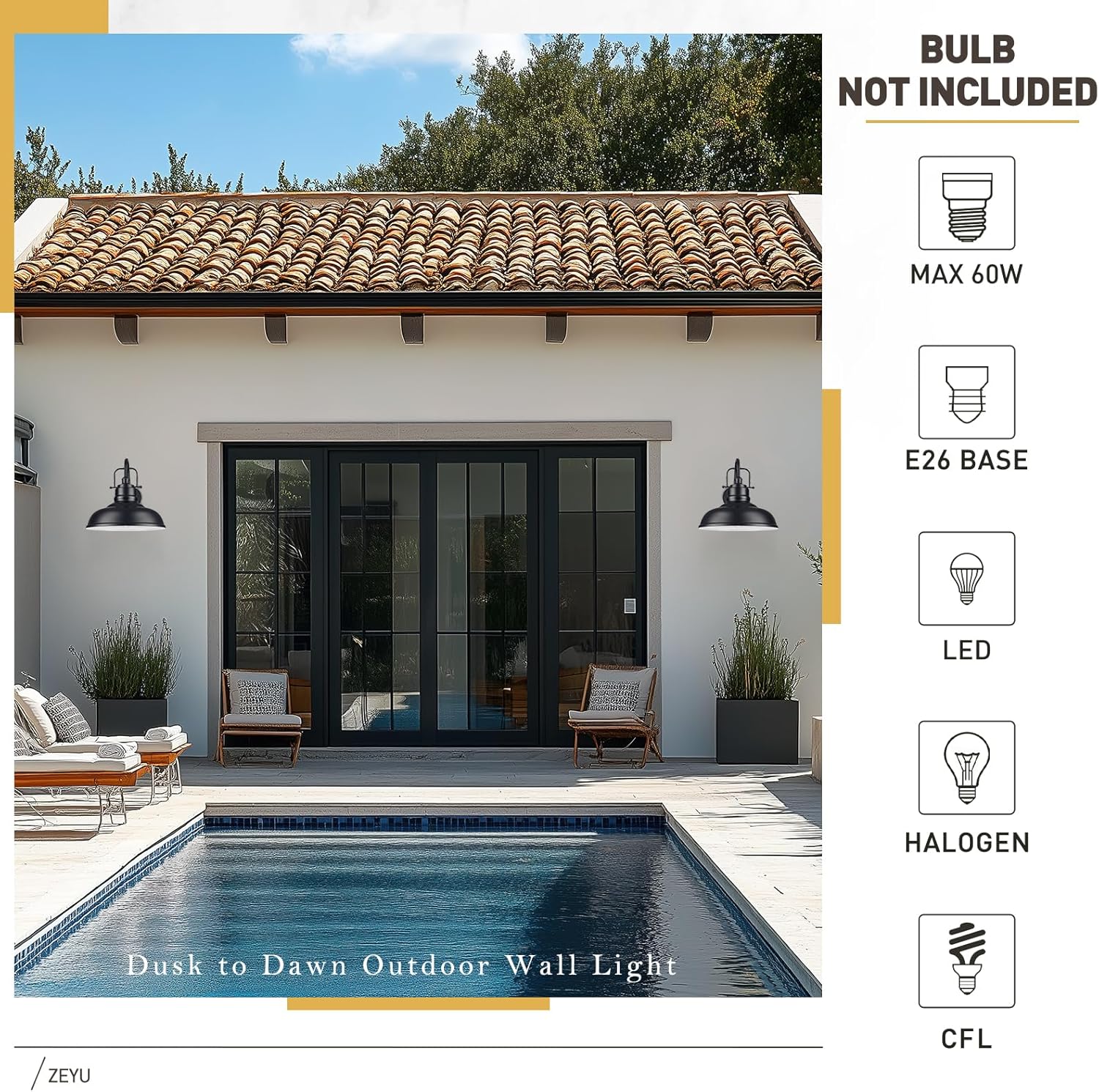 zeyu 2 Pack Dusk to Dawn Outdoor Wall Sconce, Gooseneck Barn Light Fixtures for Front Porch, Exterior Wall Mount Light in Matte Black Finish, 016-1BL-PC-2 BK