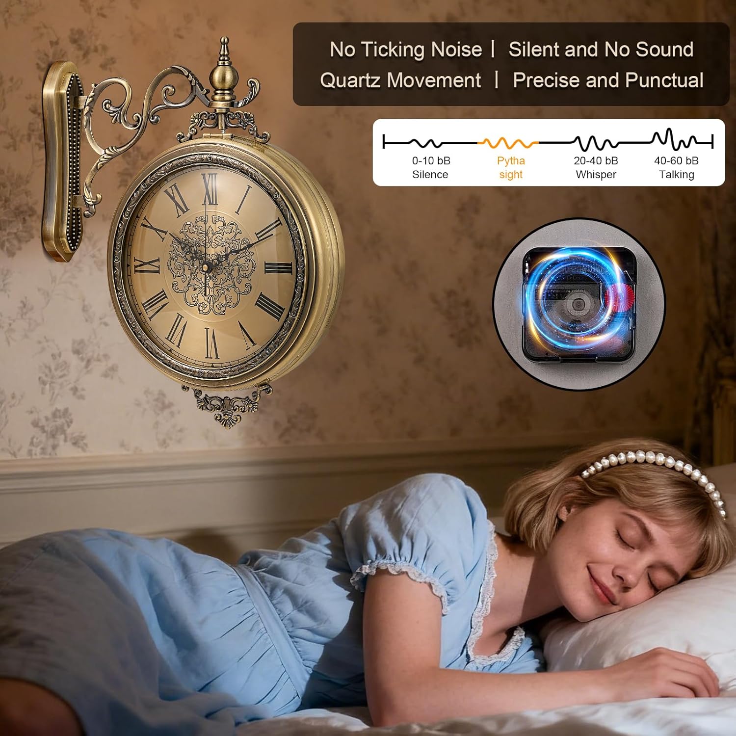 - 🔇[ Ultra-Silent Dual Quartz Movement] Enjoy perfect tranquility. Powered by 2 accurate quartz movements, this hanging clock operates with a smooth, silent sweep mechanism that produces absolutely no ticking sound. It ensures a peaceful environment, ideal for home offices, bedrooms, living rooms, or any area where silence is golden. (Batteries not included).